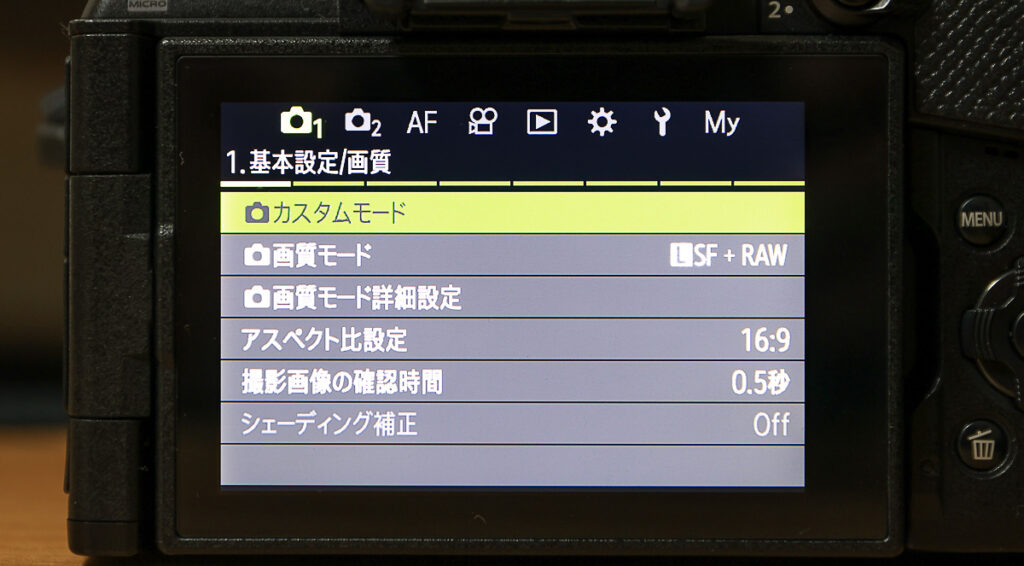 従来機からメニュー画面が大きく変更されました。以前は縦にメニューが配置されていましたがOM-5 Mark IIでは横にタブが並んでいます。個人的にはキャノンのメニュー画面と似ていてわかりやすかったです。