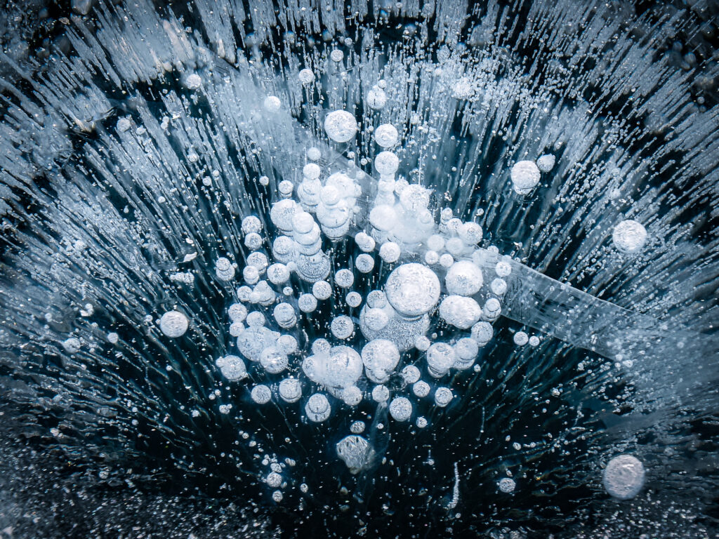 アイスバブルを撮影しました。14-150mm Ⅱであればかなり近くまで被写体に寄ることができます。