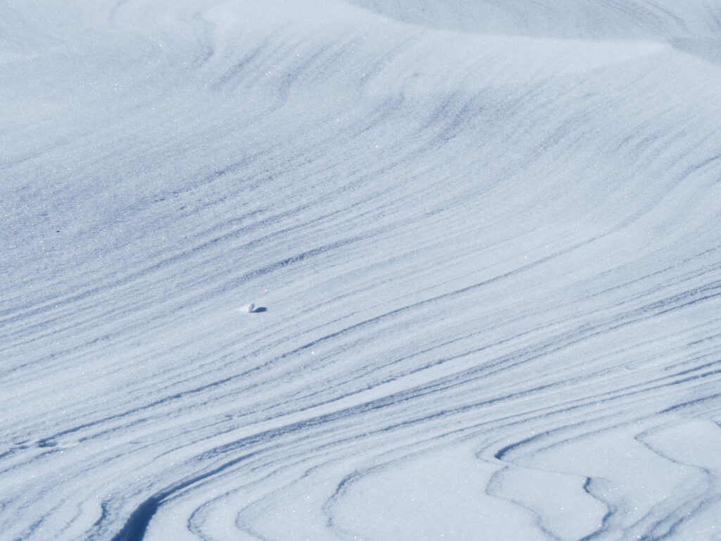 風が雪に軌跡を描いていました。このような繊細な景色もシャープに写しとれます。