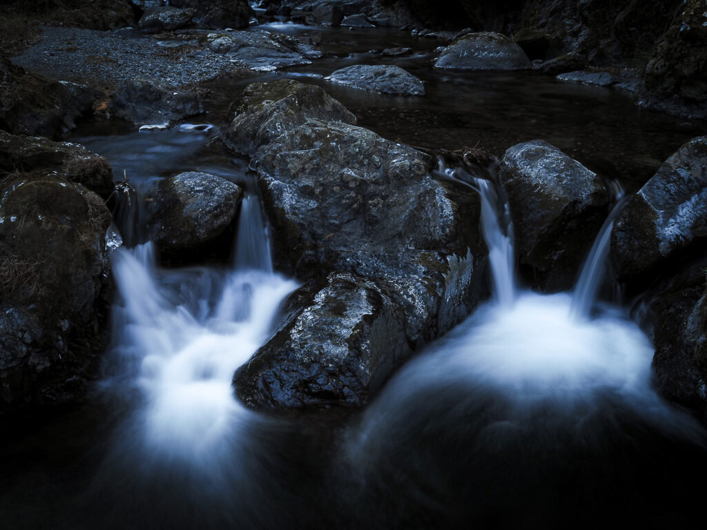 水の落ち込みを手持ちで撮影しました。シャッタースピードは2.5秒。本来的には三脚を使用すべき場面ですが、OM-5 Mark2であれば手持ちでも問題なく撮影できてしまいました。