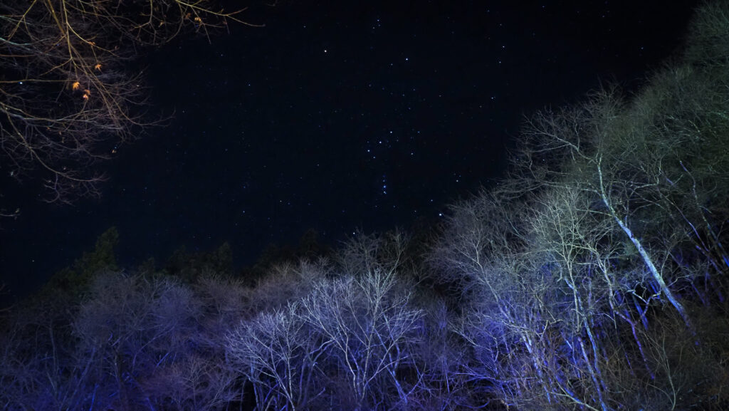 氷柱の上にオリオン座が見えました。せっかくなので星の撮影にもチャレンジしてみます。