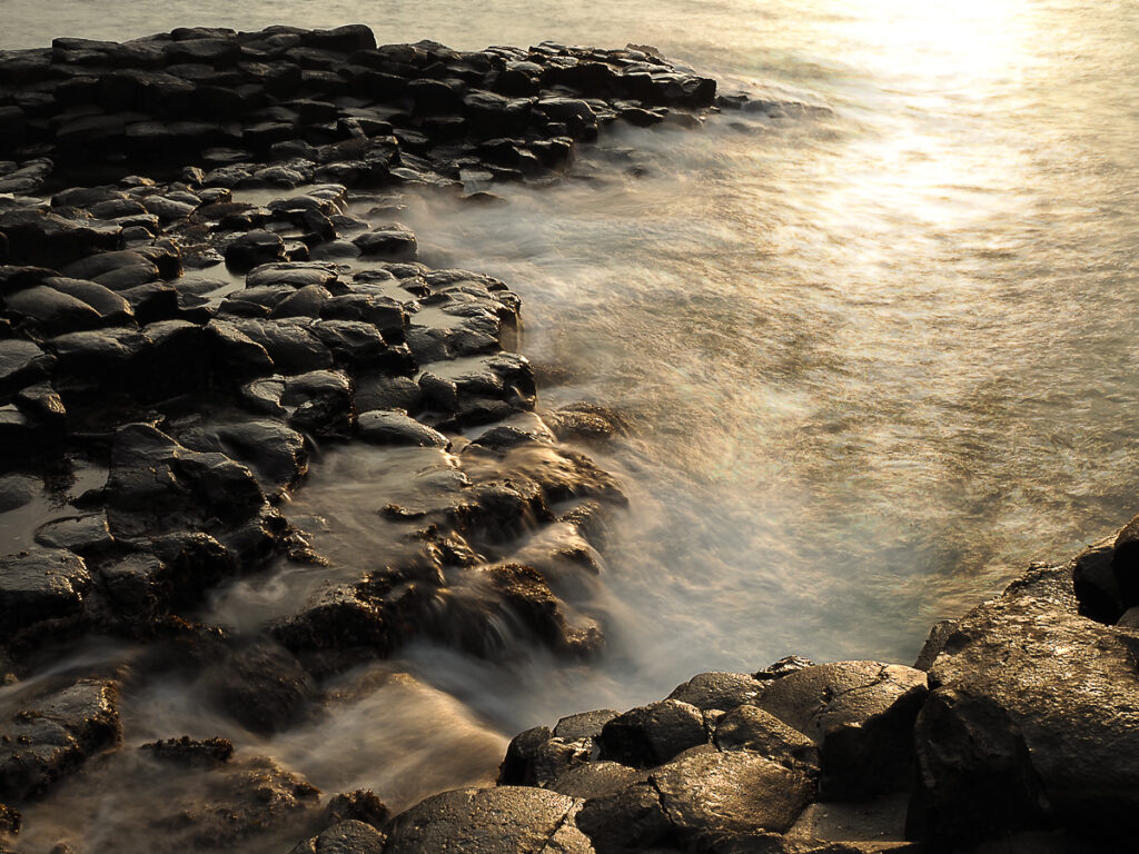 日が昇ってきました。岩礁全体が黄色く染まっていきます。ライブNDの最大16段を使用しました。これだけ明るくなってもまだフィルターなしで撮影できます。